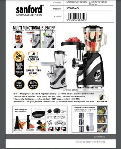 غذاساز و مخلوط کن 3 کاره سانفورد همراه با سالاد ساز و چرخ گوشت مدل 5860