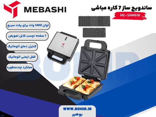 ساندویچ ساز چند کاره مباشی مدل ME618 با ۷ صفحه و ۴ خانه