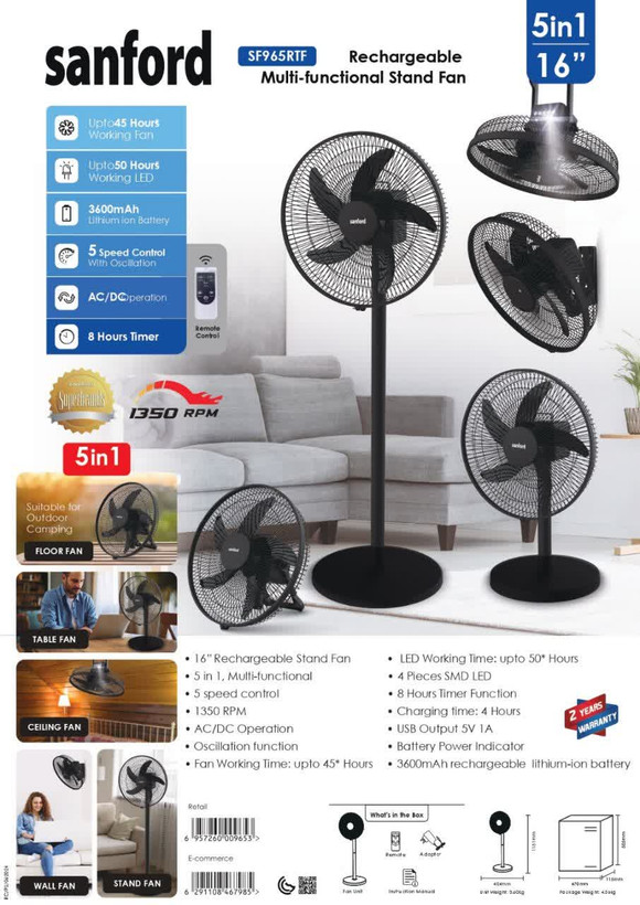پنکه شارژی۵ کاره سانفورد 965
