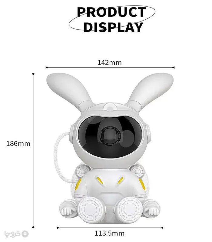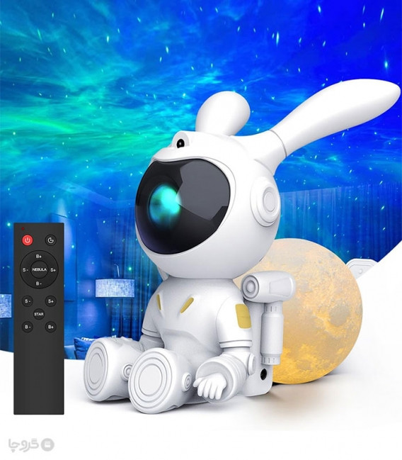 چراغ خواب و پروژکتور کهکشانی طرح خرگوش فضانورد - همراه با کابل شارژ