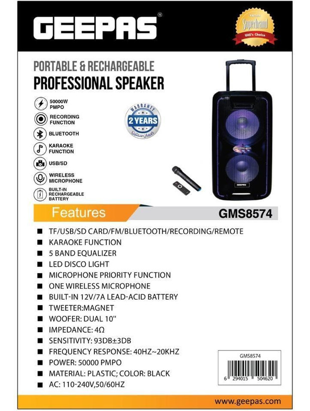 اسپیکر شارژی و بلوتوثی جیپاس مدل GMS8574
