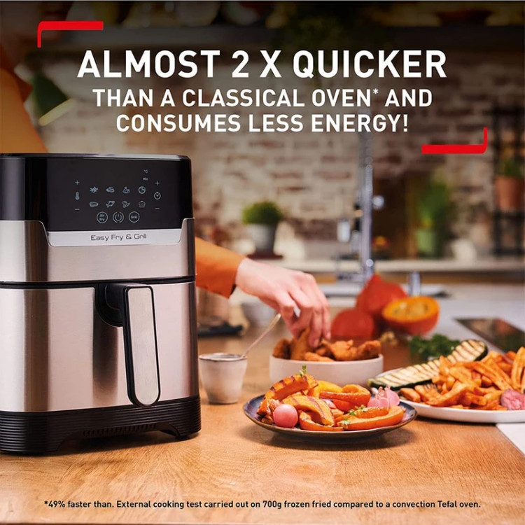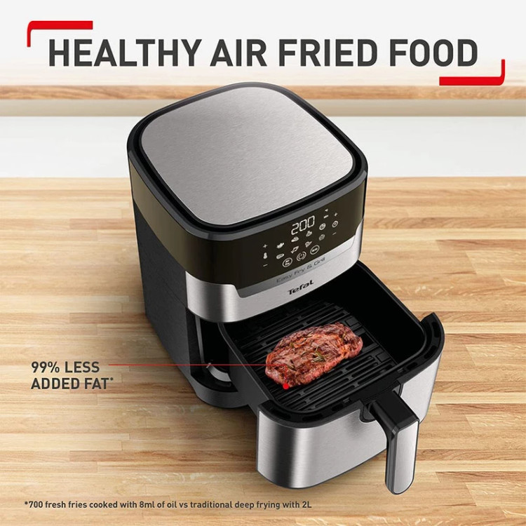 سرخ کن تفال مدل EY505 اولین سرخ کن 2 در 1 می باشد که قابلیت سرخ کردن و گریل را به صورت مجزا دارا می باشد.از آشپزی سالم با دو وسیله در یک دستگاه لذت ببرید! در این سرخ کن Easy Fry & Grill Precision یک سرخ کن و گریل را برای سرخ کردن سالم با روغن کم یا بدون روغن همراه با کباب کردن بی عیب و نقص ترکیب می کند. با 8 برنامه خودکار آن، نتایج عالی در پخت غذا را مشاهده خواهید کرد، در حالی که یک گزینه کم آبی مفید، میان وعده های خوشمزه خانگی را در دسترس شما قرار می دهد.