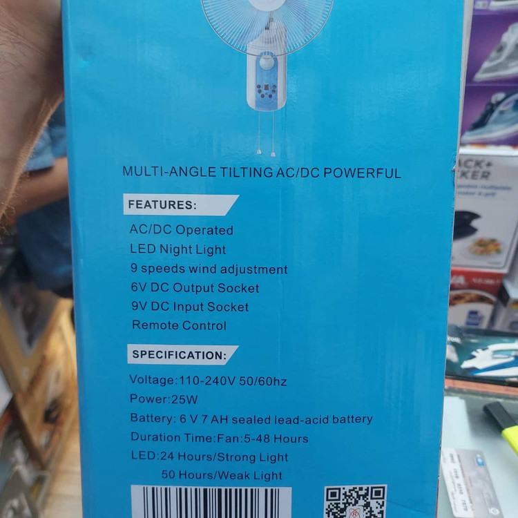 پنکه دیواری برق و شارژ ریسینگ مدل ۲۲۱۶