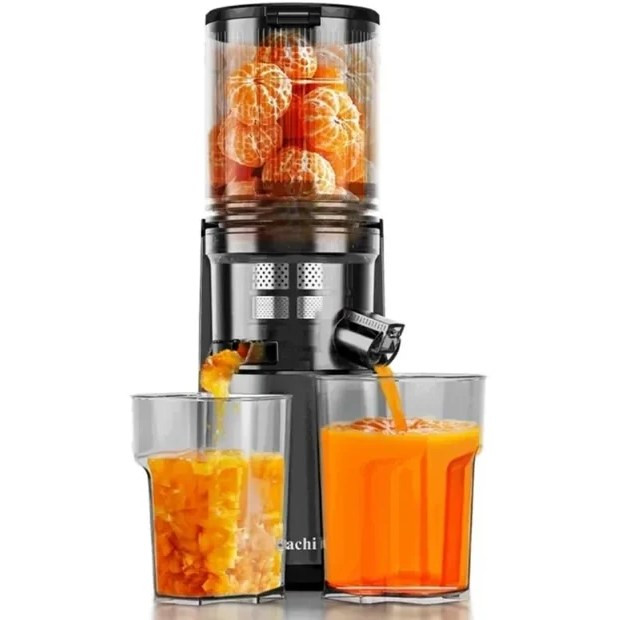 دهانه خوراک بزرگ قفل ایمنی و سیستم خنک کننده کم صدا موتور فول مس جداسازی آب میوه و تفاله فناوری فشار آهسته آبمیوه گیری آهسته ساچی با ورودی تغذیه بزرگ