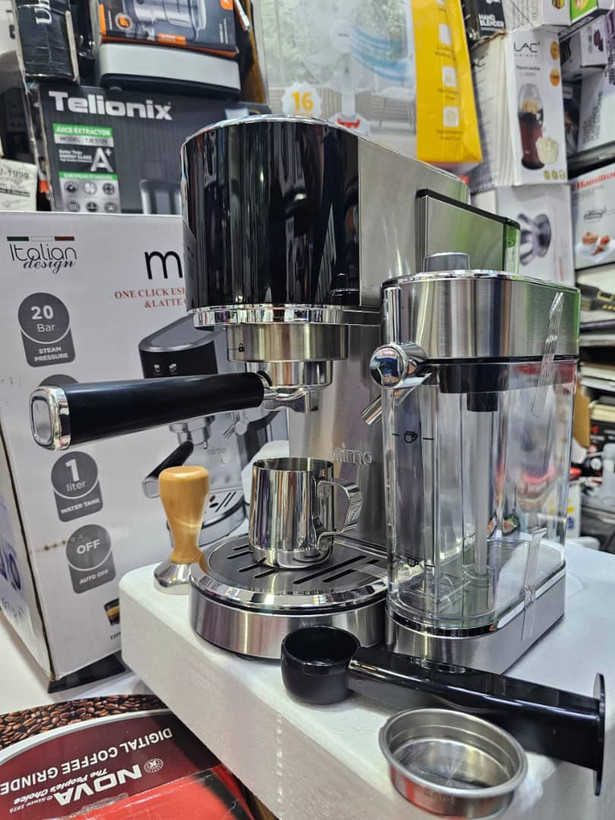 اسپرسوساز اتوماتیک میرنو(mirno) دارای مخزن شیر با قدرت ۱۳۵۰ وات دارای پمپ ایتالیایی اولکا با قدرت ۲۰ بار با صفحه نمایش و کنترل دیجیتال تمام تاچ دارای برنامه های خودکار اسپرسو تک و دوبل و کاپوچینو و کافه لاته و دارای برنامه شستشو اتوماتیک با بدنه تمام استیل دارای اکسسوری کامل از جمله پیچر و تمپر و بسکت تک و دوبل با کیفیت عالی و طراحی زیبا و مدرن با قابلیت خاموشی خودکار
