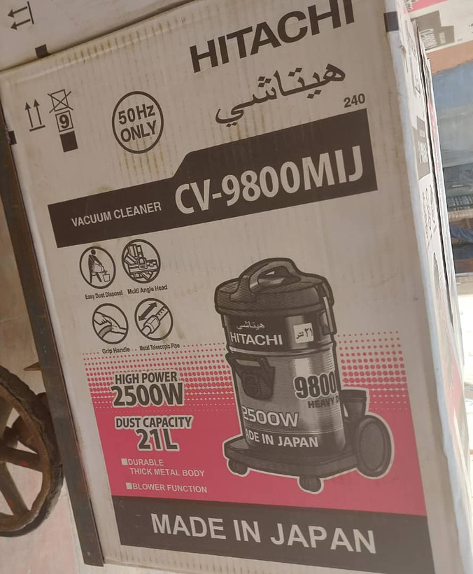 جارو برقی سطلی هیتاچی ساخت ژاپن دارای موتور قدرتمند ۲۵۰۰ وات با ظرفیت مخزن ۲۱ لیتر دارای بدنه ۲ جداره قوی با قدرت مکش فوقالعاده عالی با طراحی زیبا و کیفیت عالی