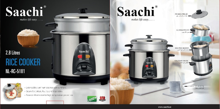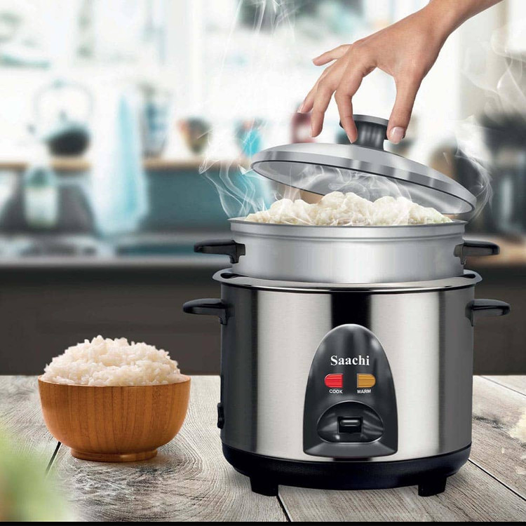 پلوپز و بخار پز ۲ کاره ساچی با ظرفیت ۱۰ نفر با ظرف داخلی تفلون نچسب دارای قطع کن اتوماتیک و دارای وارمر گرم نگهدارنده با کیفیت عالی