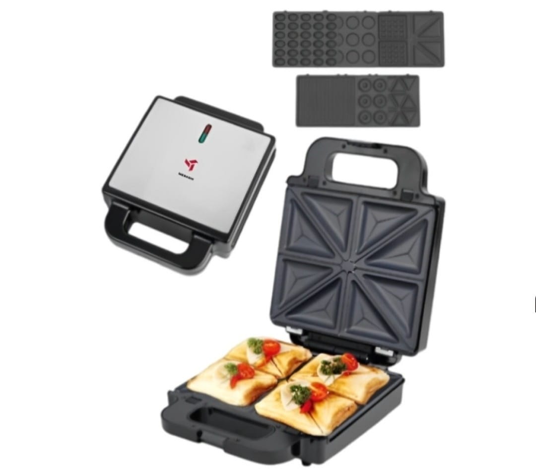 ساندویچ ساز 7 کاره مباشی دارای ۱ صفحه چدنی با روکش تفلون است. که هر صفحه دارای ۲ خانه ۲ عددی می باشد که میتواند همزمان ۴ عدد اسنک را با هم بپزد.